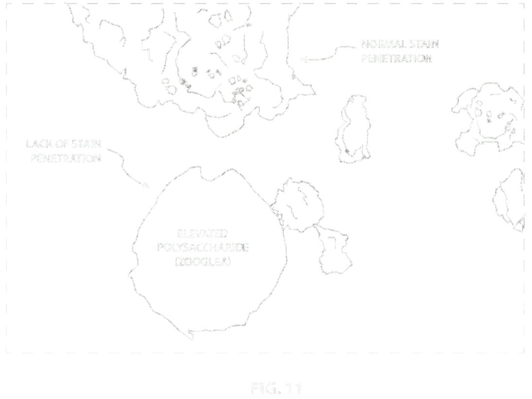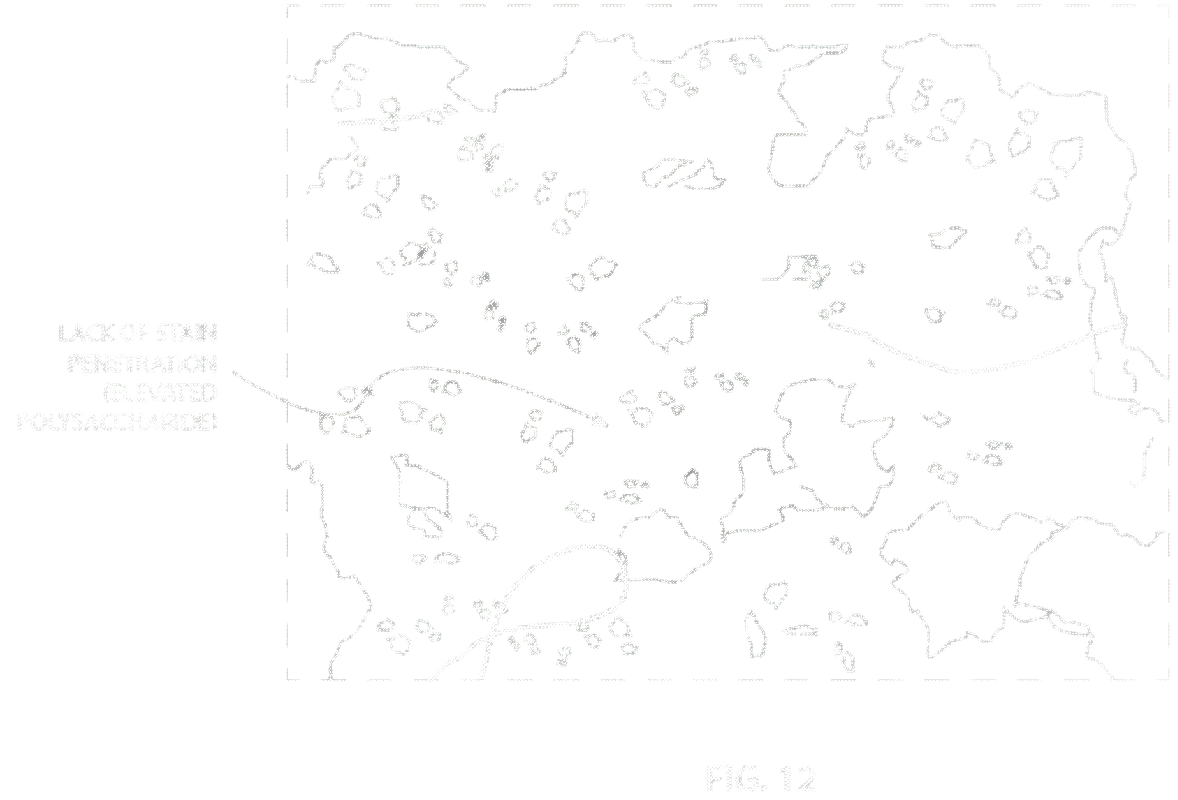 FIG. 12 shows a real sample with lack of stain penetration, indicating elevated polysaccharide within the floc matrix itself.